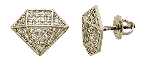 Sterling Silver Yellow Micropave Diamond Shape Screw-Back Stud Earring