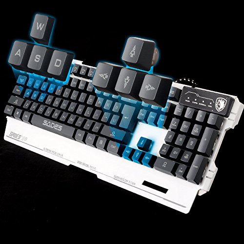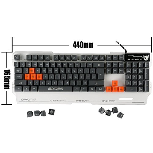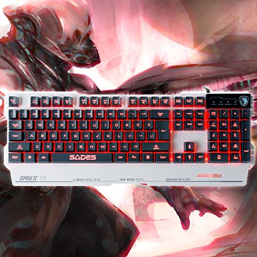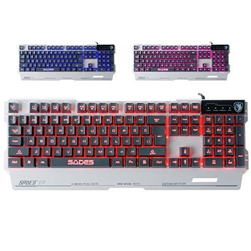 SADES k8 Blademail Gaming Keyboard With 3 Colors Adjustable Backlights Adjustable Brightness 104 Grey Keys For PC White Metal base