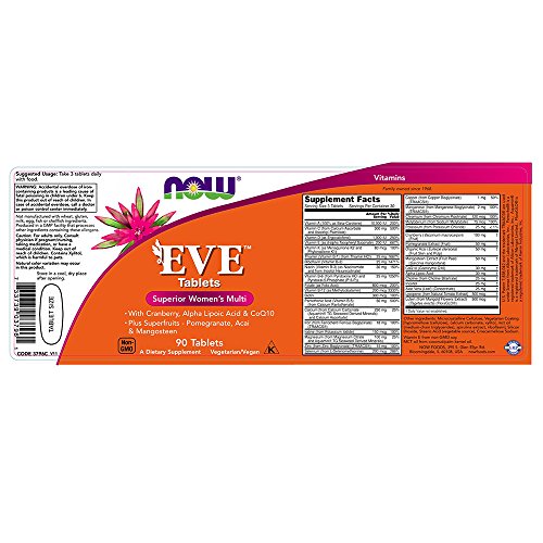 Superior Women's Multi with cranberry, alpha lipoic acid, and CoQ10. Eve also contains the Superfruits pomegranate, acai, and mangosteen.