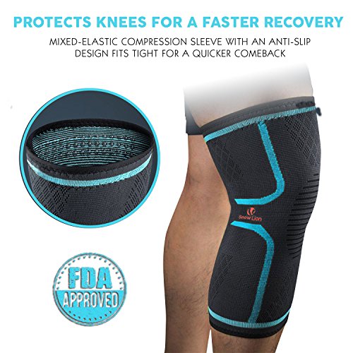 -. Feature : PHENOMENAL PROTECTION Snow lion Knee brace apply stable pressure across your knee joint which provides ultimate pain relief from arthritis, swelling, tendonitis, meniscus tear, soreness, stiffness, ACL, PCL, MCL, and other knee pain. / PUSH YOURSELF TO THE LIMIT Our Knee support is the perfect fit for any activity that involves a great amount of stress on the joints like, Baseball, Basketball, Crossfit, Soccer Golf, gym, Hiking, Running, Tennis, Volleyball and more! You'll be able to enjoy exceptional Knee support while still maintaining your peak performance and a full range of leg motion! / PREMIUM QUALITY Our Knee sleeve is manufactured to provide superior support, comfort, and relief without compromising your mobility. Tight, form-fitting, and breathable compression fabric maintains joint stability regardless of activity, helps improve blood circulation and eases the pain. while avoiding the itchiness common to neoprene supports. Quick at absorbing sweat and keeps your leg dry and odor free, gives you hours of continuous use! / SPIRAL ELASTIC WEAVING DESIGN Snow lion's lifetime warranty guarantee a comfortable fitting fabric for a healthier lifestyle / CUSTOMER SERVICE SUPPORT 30 days unconditional money back and a lifetime warranty