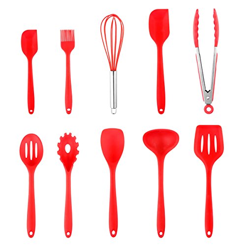 COOKING UTENSILS SET: Stain and odor resistant, Spoon, Brush, Whisk, Large Spatula, Small Spatula, Ladle, Slotted Turner, Slotted Spoon, Tongs, Pasta Fork.