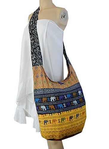 -. Title : BTP! Thai Cotton Hippie Hobo Sling Crossbody Bag Messenger Purse Ethnic Elephant Parade