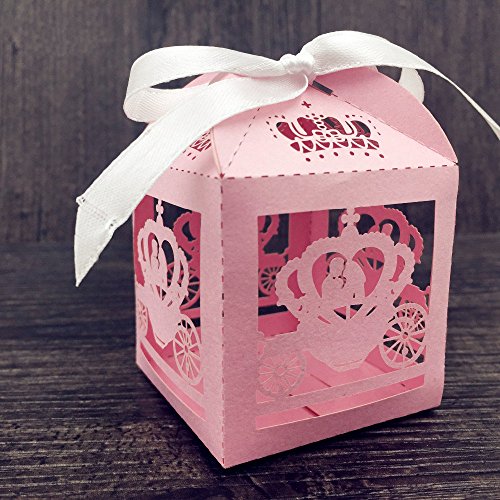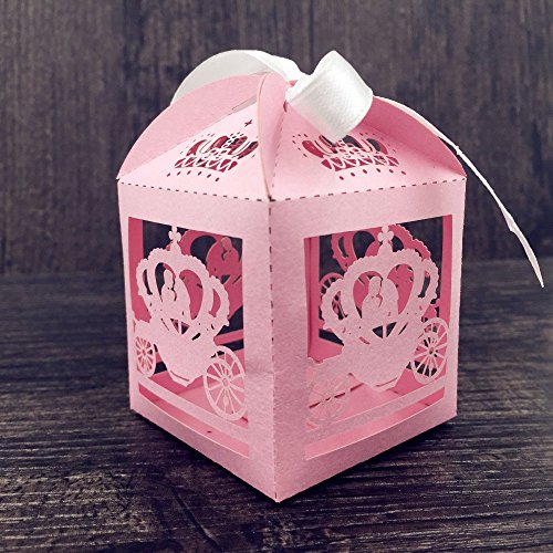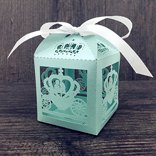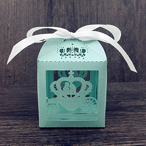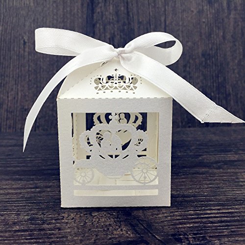 -. Title : Saitec ® 50pcs Laser Cut Cinderella Enchanted Carriage Marriage Box,pumpkin carriage Wedding Favor Boxes Gift box Candy box(white ribbon)