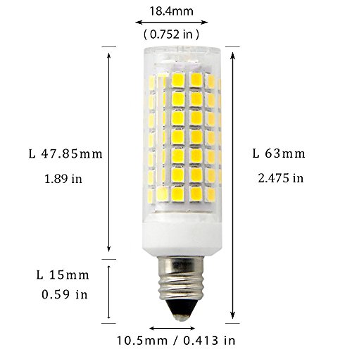 - Dimmable; Input voltage: 110V/120V/130V; Light Color: Daylight White 6000K; Base type: Mini Candelabra Base E11;