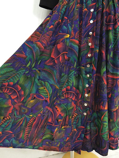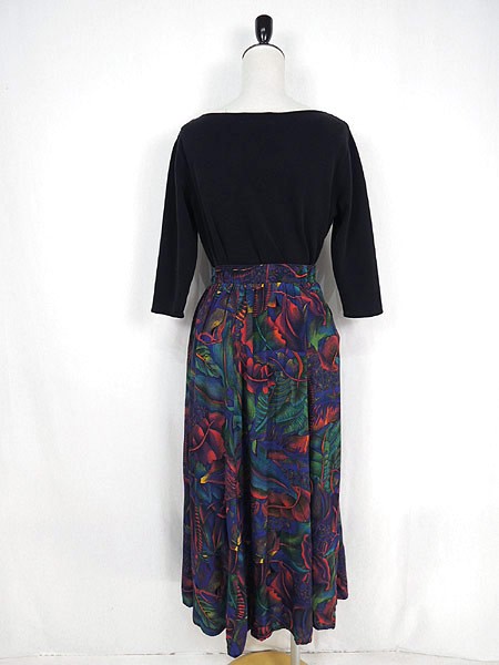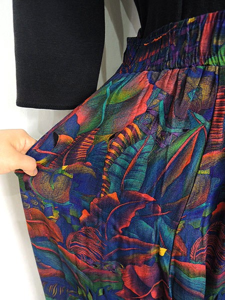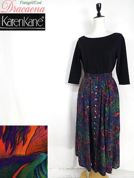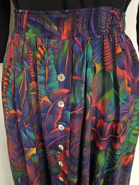 Ladies ブランド- カラーカラフル メール便不可 コンディション★★★ 素材レーヨン100% 表記サイズ10 スタッフコメントカラフルなボタニカル柄のスカート、アート風なプリントが素敵です。シェルボタン◎、前開きデザイン。裏地なし。 実寸サイズ 着丈 83 cm ウエスト 64cm 〜 80cm (25インチ〜31インチ) ※ウエスト・ヒップ以外は平置き採寸