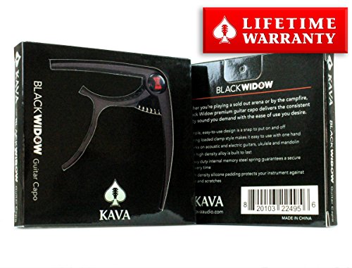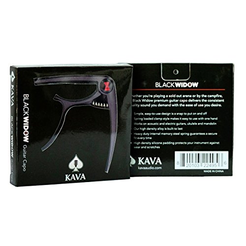 It should be easy to use and it should work properly every time. The Kava Black Widow guitar capo is designed to allow you to focus on what's important- your music. Its easy-to-use design fits comfortably in your hand and allows for quick positioning using only one hand. The high density silicone pads and heavy duty internal memory steel spring deliver just the right amount of pressure to hold your strings tightly without damaging your instrument. The premium alloy metal is built to last and won't weaken, bend or break like other cheaper alternatives.