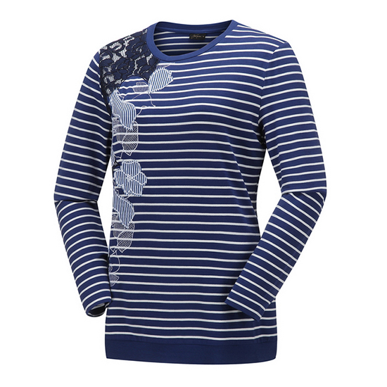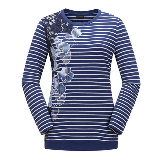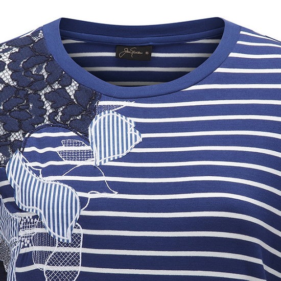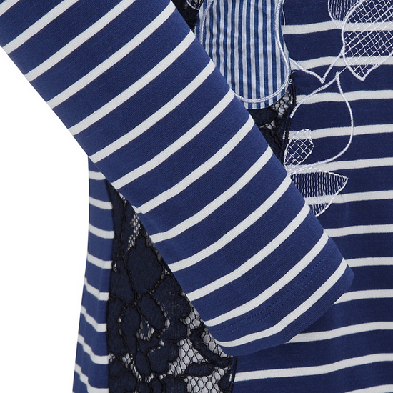 - 스트라이프 바탕에 레이스와 패치 자수 디테일로