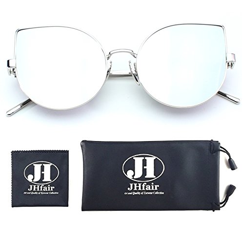 -. Title : JHfair Cat Eye Mirrored Flat Lenses Light Metal Women Fashion Designer Sunglasses