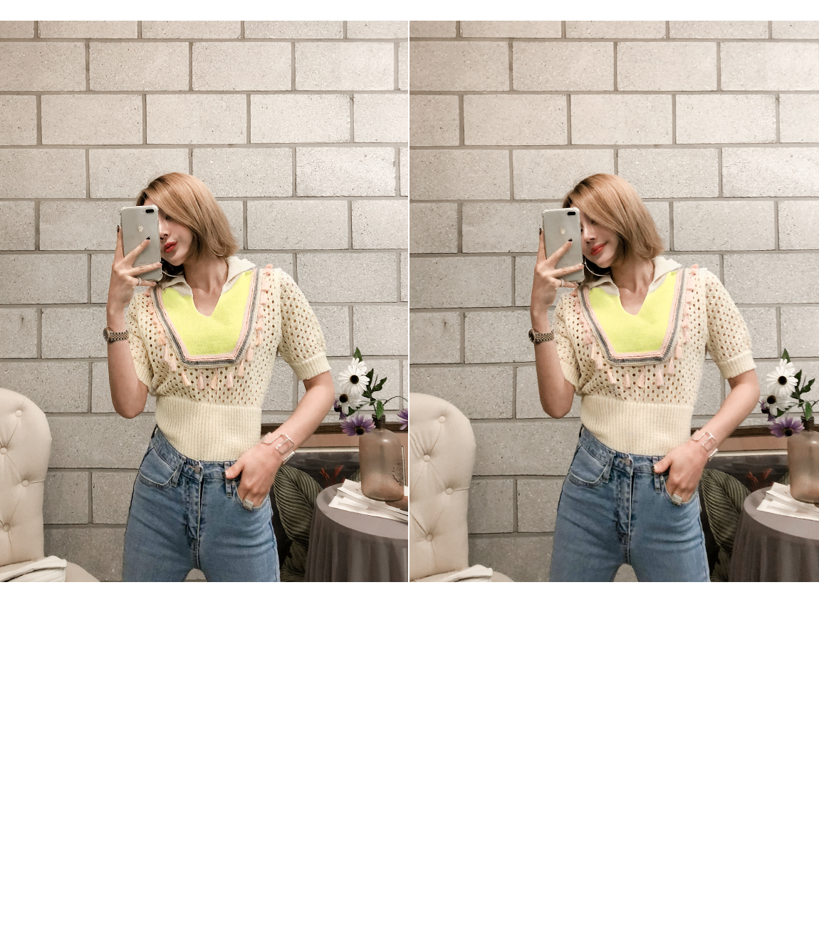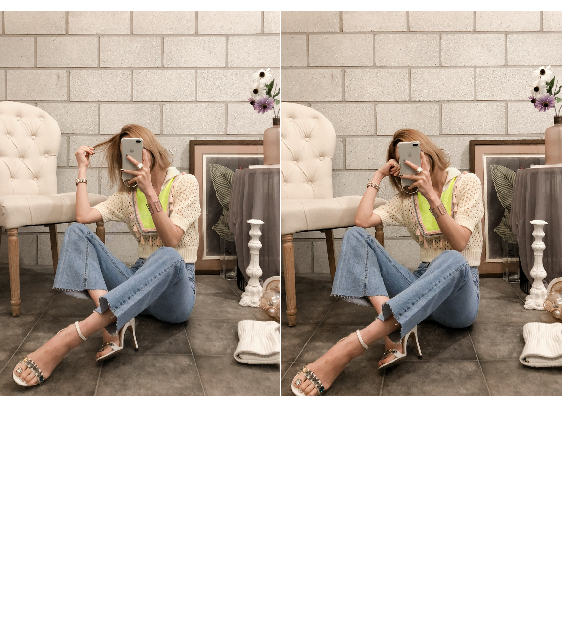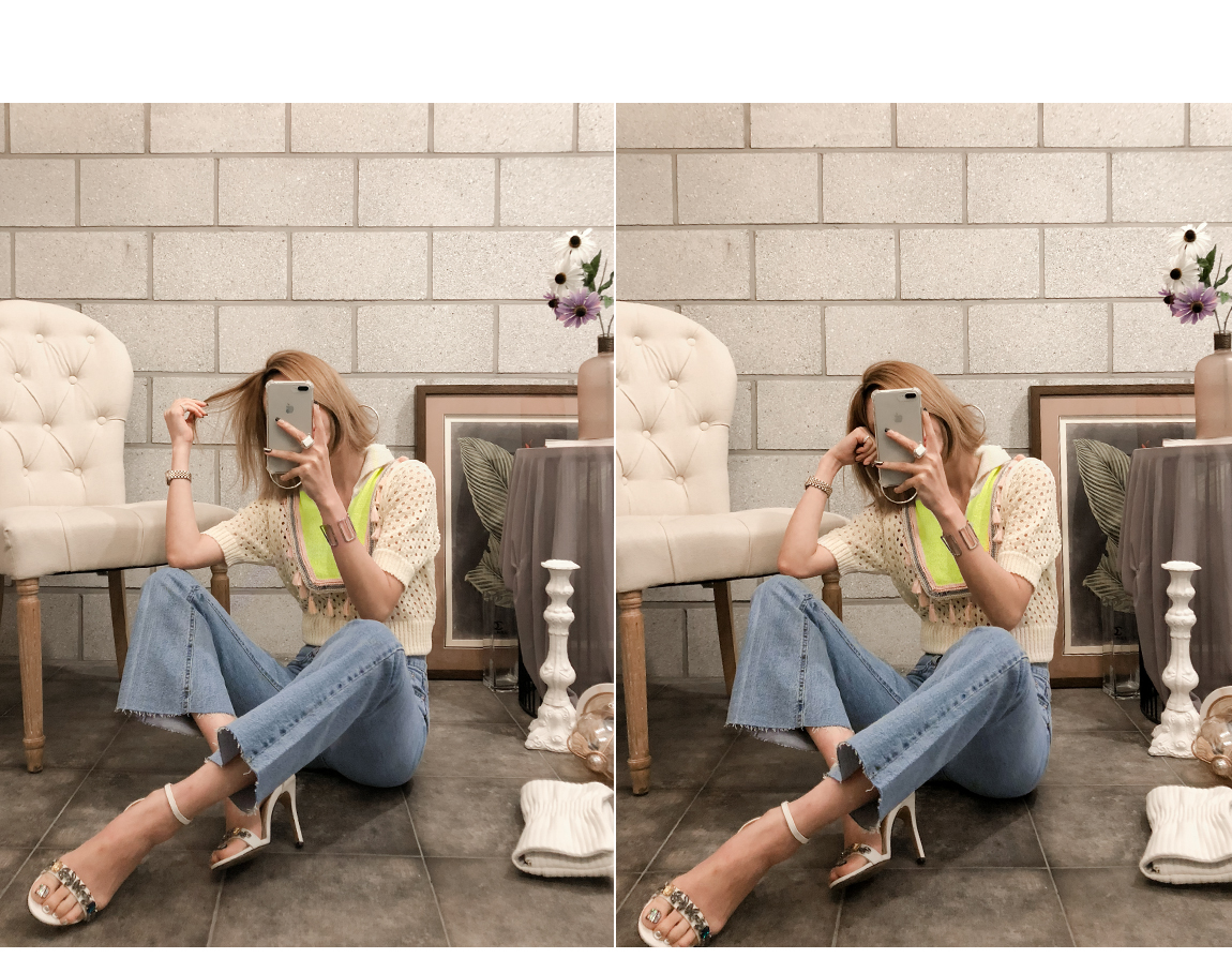 レッグ・ラインをつないでくれてスリムに演出しました