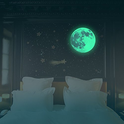 -. Feature : Super Moon Luminous Wall Decals, DIY Wall Stickers,30*30cm Moon 1sheet,Universal Planets 1 sheet like picture. / Install area : It can be stuck to any smooth surfaces: walls, furniture, accessories, tiles, mirrors and windows / Removable, Repositionable without leaving any trace. / Ideal to decorate nurseries, children's bedrooms, playrooms, classrooms etc within seconds / good gift for kids rooms,Glow in the dark, you can see beautiful stars and butterflier at night,