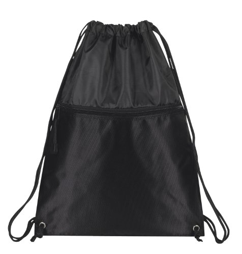 Bags for Less Drawstring Backpack with Zipper Pocket, Black