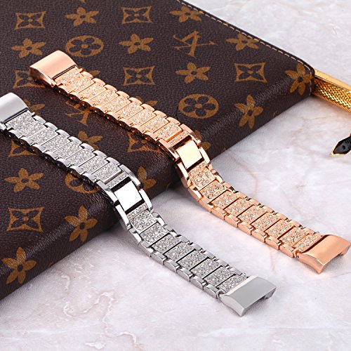 Fitbit Charge 2 Metal Band,Charge2 Adjustable Replacement Bands Bracelet Strap Belt Silver/Rose Gold for Fitbit Charge2