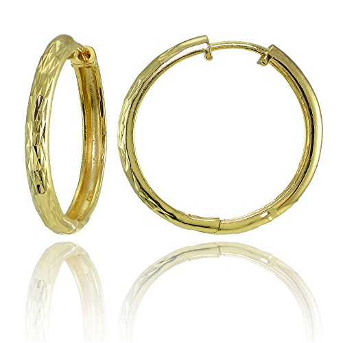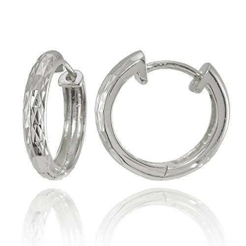 Sterling Silver Diamond-Cut Hinged Huggie Hoop Earrings, 2 Sizes