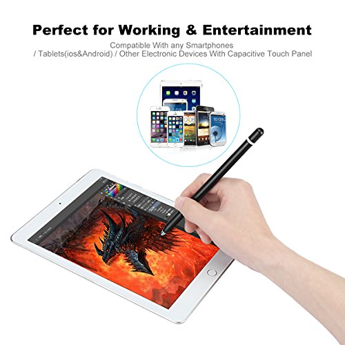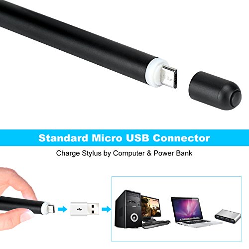 -. Binding : Electronics -. Brand : Rainco -. Color : Black -. EAN : 0761460681559 -. Feature : Fluent and Sensitive: Highly Accurate tip makes you feels like writing on your electronic devices with real pen. Ultra sensitivity will give you what you write or draw on your device immediately / Top Accuracy: 2mm thin fiber Tips on the pen gives you the most accurate touch each you use the pen on your tablets or cellphone. It will exactly follow your order of each touch / Long-Last Rechargeable Battery: The rechargeable Battery will bring you 6-hour working time with this stylus pen. 110Mah battery capacity only needs 2 hours to recharge. / Metallic feel: The material on the surface of the pen is similar to metal. When you hold the pen, it feels sny and comfortable. Makes you write or draw in more fluent way / How to use: Press the button on the end of the pen before use. The pen will shut off automatically for 2 minutes without writing on touch panel -. Label : Rainco -. Manufacturer : Rainco -. PackageQuantity : 1 -. ProductGroup : PC Accessory -. ProductTypeName : COMPUTER_COMPONENT -. Publisher : Rainco -. Studio : Rainco -. Title : Stylus Pen, Rainco Rechargeable Accurate Point Stylus Pens for Cell Phones iPad Pro or Tablets and other Touch Screen Devices - Black -. UPC : 761460681559