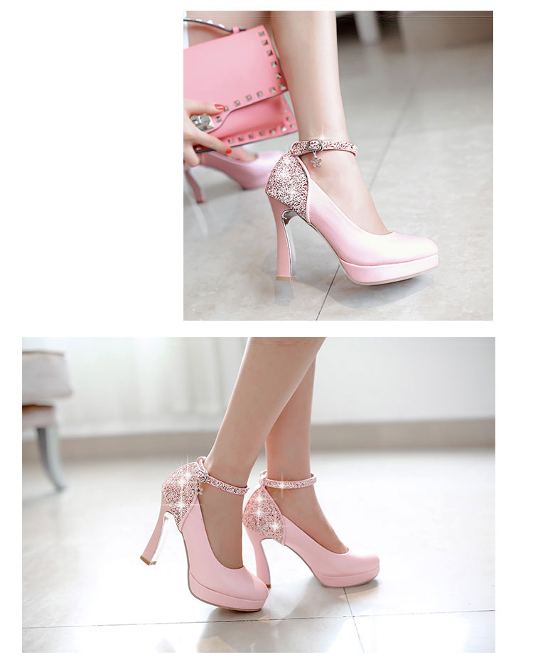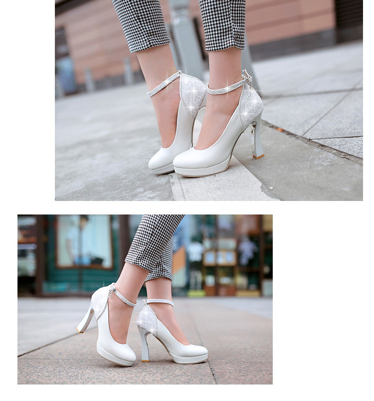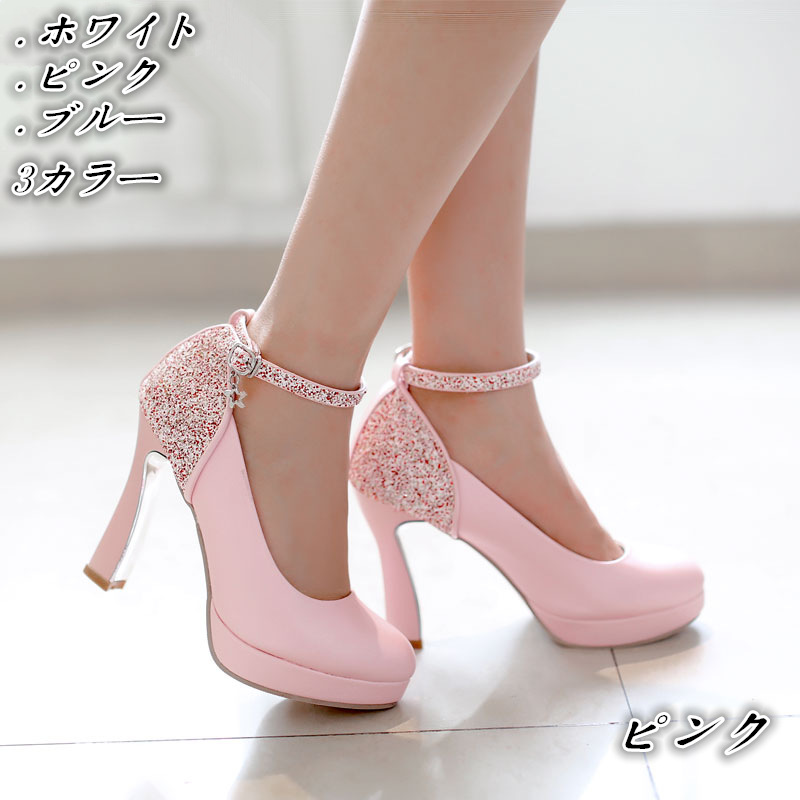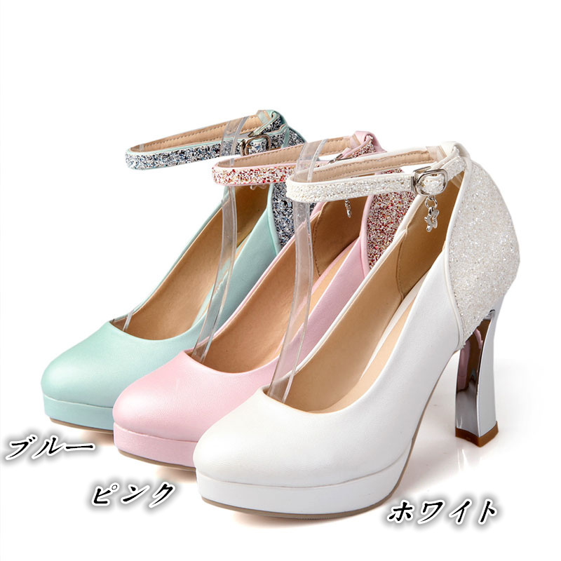 商 品 名 :【サイズ有22.0~24.0】ビジュー付き 厚底 アンクルストラップ パンプス ハイヒール ラウンドトゥ レースアップ パンプス パーティー パンプス大きいサイズ ウェディング靴
