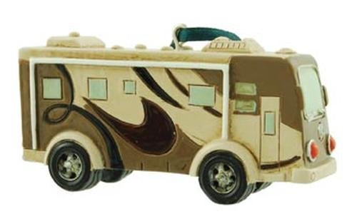 -. Feature : Ornament that is shaped like a Class A RV / Great detail. Made of polyresin / Green nylon string for hanging / Camper measures 2 inches x 1 inch x 1 inch