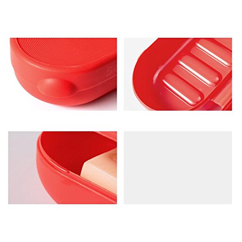 T&B Portable Soap Case Airtight Container Oval Modern Soap Tray Holder PP Plastic Soap Box Home Traveling Accessory (Red)
