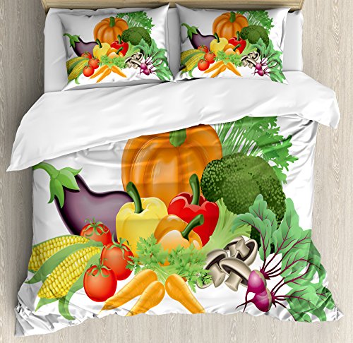 (Ambesonne)/Bedding Bath/Bedding/DIRECT FROM USA/Harvest King Size Duvet Cover Set by Ambesonne, Cartoon Drawing Style Fall Harvest Yield Fresh ...