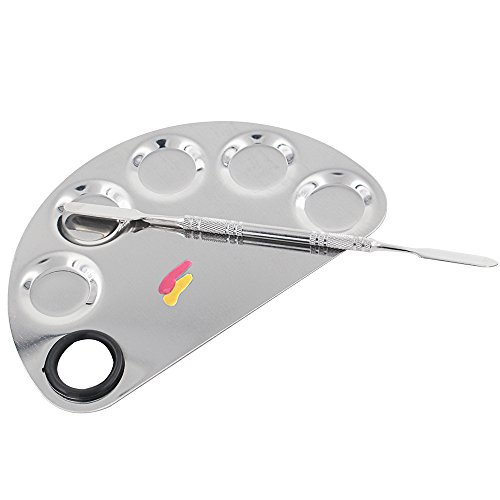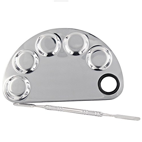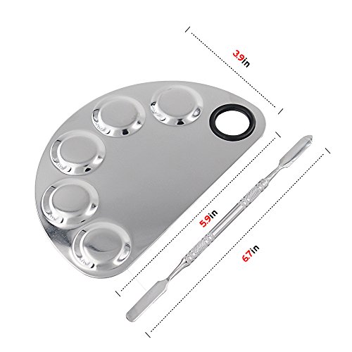 Okdeals Stainless Steel Cosmetic Makeup Palette Spatula, Semicircle 5-well Makeup Mixing Palette Tool for Nail Art Eye Shadow Eyelash Cosmetic Blending