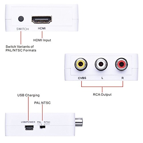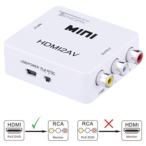-. Title : Tendak HDMI to RCA Converter HD 1080p HDMI to RCA CVBS AV Composite Adapter HDMI2AV Convertor Supports PAL/NTSC Switch with USB Charging Cable for STB Blu-ray DVD Xbox PS3 PS4 Games