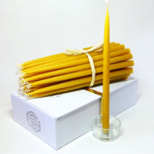 Set includes 36 candles, the guidelines for using a beeswax candle, porcelain candle holder, a pen with inscription, white cardboard Box 8 9/16 x 2 3/4 x 5 inches