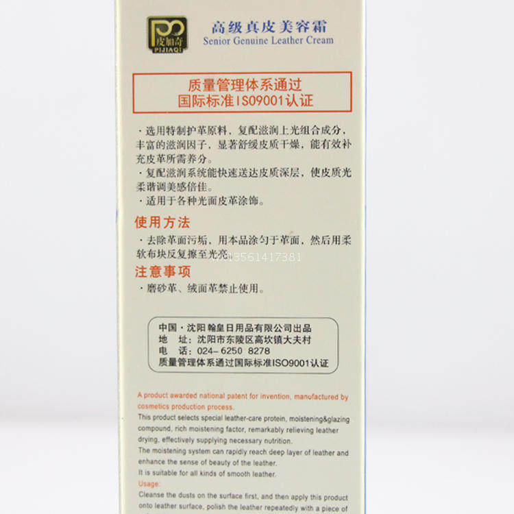 ●适用于所有光面皮革制品(皮鞋,皮包,皮质沙发等),用后能使皮面丰满自然,柔软润滑,防水防潮、防霉、抗静电、抗老化、光亮持久。