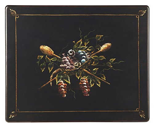 -. Feature : Perfect for home or office, our exquisite nesting table set features traditional styling and elegance. / These space saving tables can be moved about the room when extra table surface is needed, or nested one under the other. Beautifully hand painted with traditional fruit and floral motifs, these tables are crafted of poplar wood solids and MDF with a moderately distressed finish. / Arrives set up - no assembly required. Dimensions: Largest Table: 22"W, 18"D, 26"H,