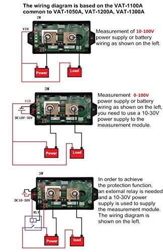 - The above figure applies to VAT1050, VAT1100, VAT1200, VAT1300 measurement circuit voltage of 10-100V; attention at this time attention to the jumper cap to receive 2W, the left wiring method is suitable for battery discharge measurement and DC circuit measurement; The wiring method on the right is only suitable for charging the battery.