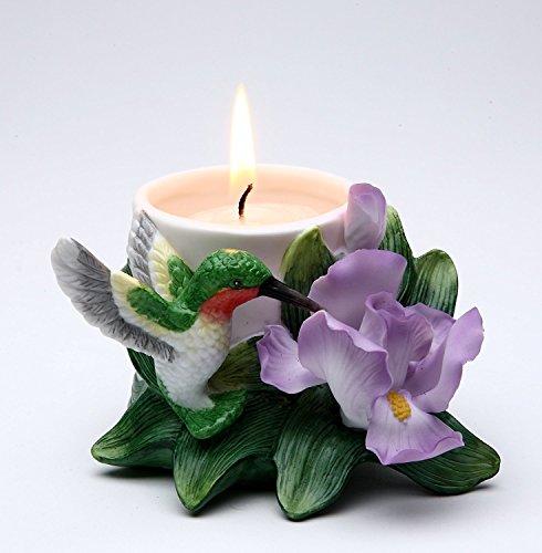 Cosmos Gifts 5151 Porcealin Hummingbird With Iris Tea Light Holder 3"H