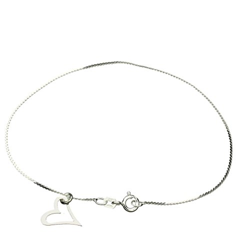 -. Title : Sterling Silver Heart Charm Serpentine Nickel Free Chain Anklet Italy, 9.5"
