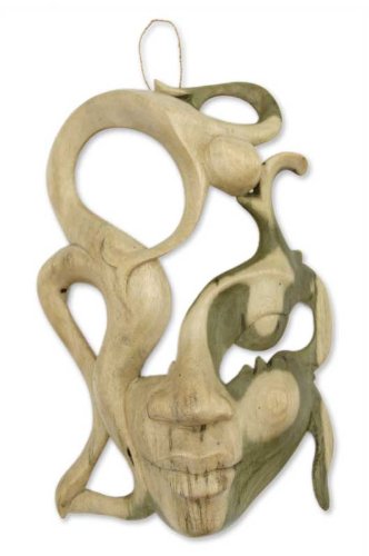 NOVICA Decorative Modern Wood Mask, Beige 'Balinese Woman'