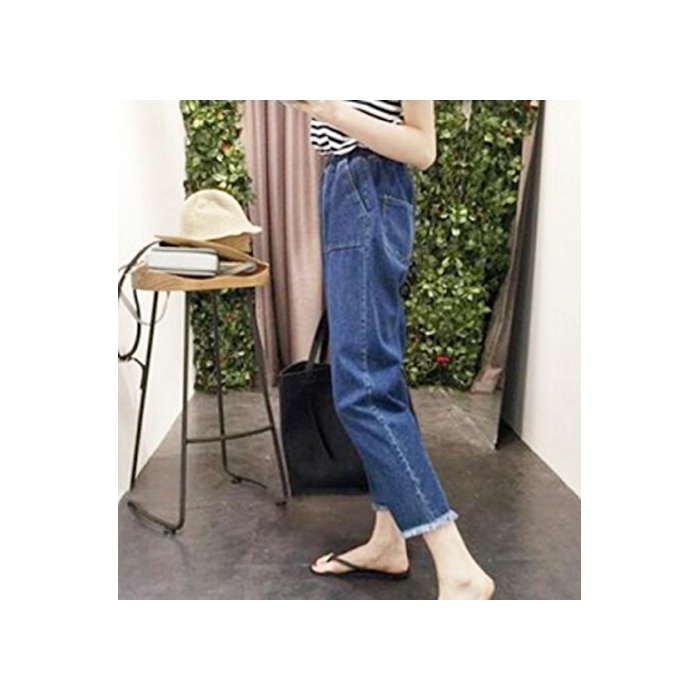 Happy smile life 연꽃(향기백련)《루》 (Hasle) 레이디스 캐주얼 데님 진즈 접지않고 자른채로 처리 넉넉하게 죠《가》 사루엘(Sarrouel) 팬츠 7 분장추동