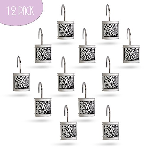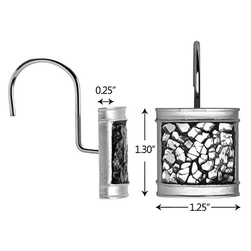 FASHION-FORWARD SHOWER RINGS: The Silver Mosaic Glass Collection sports a brushed pewter finish topped off with crackled glass for a contemporary feel. You’ll be admiring the shower curtain hooks silver beauty right as you take a bath. Click 'Add to Cart’ now!
