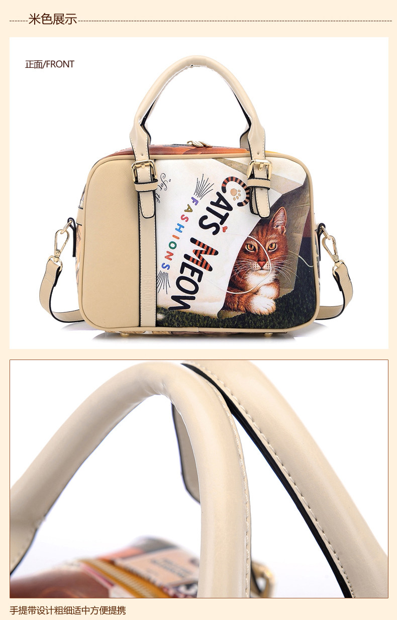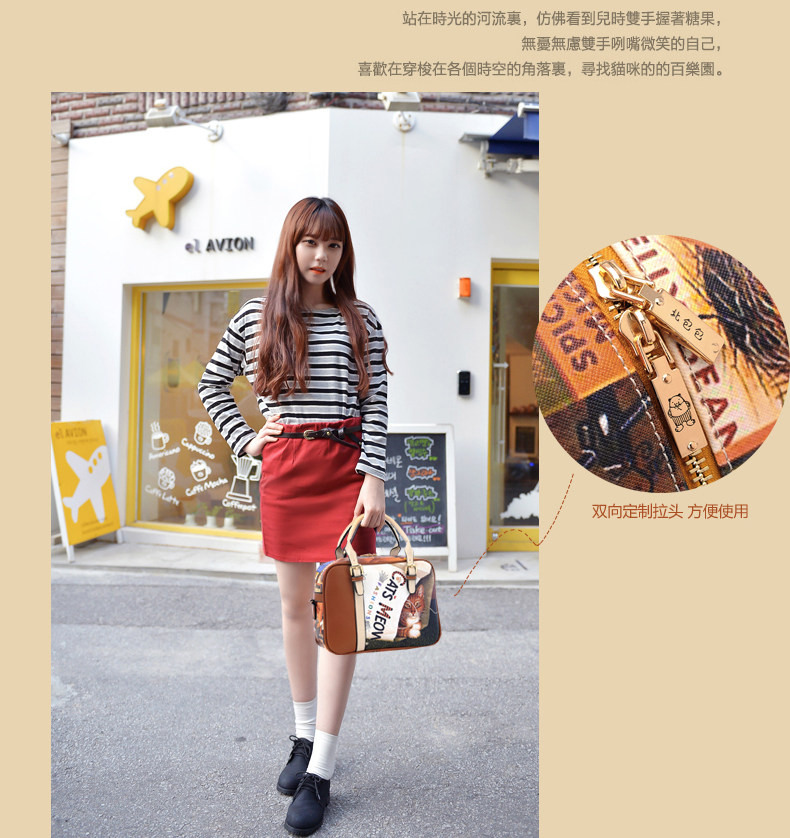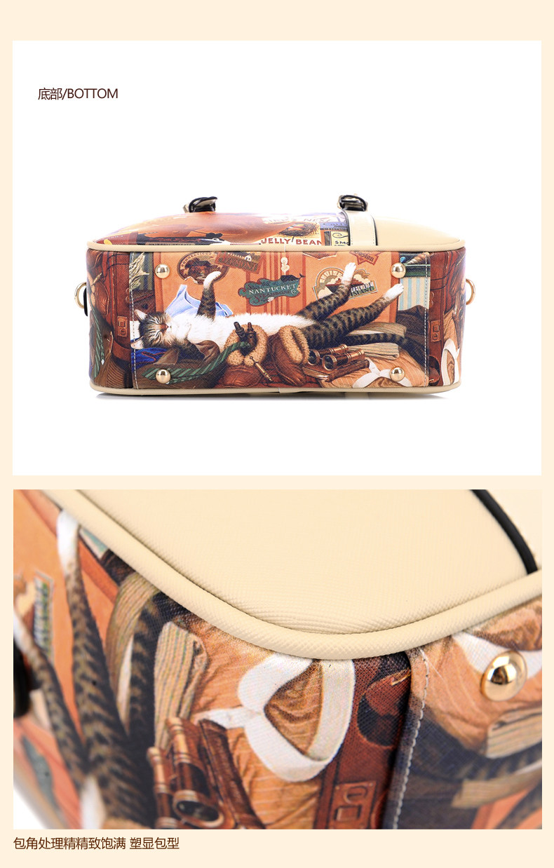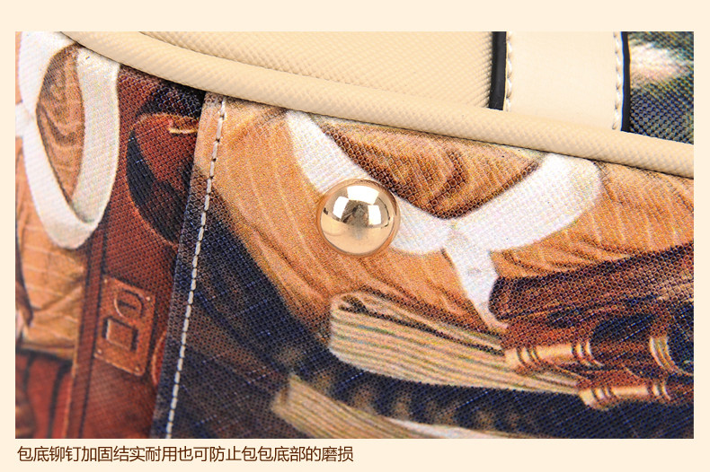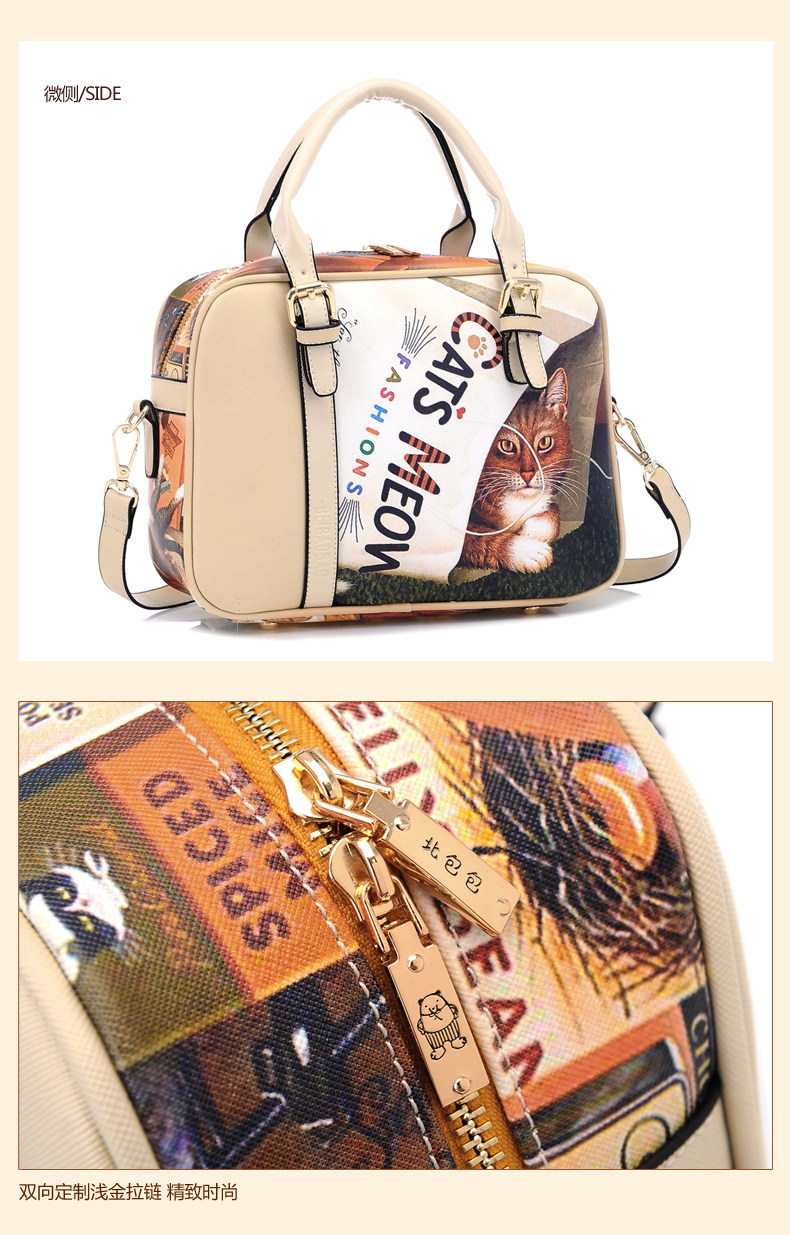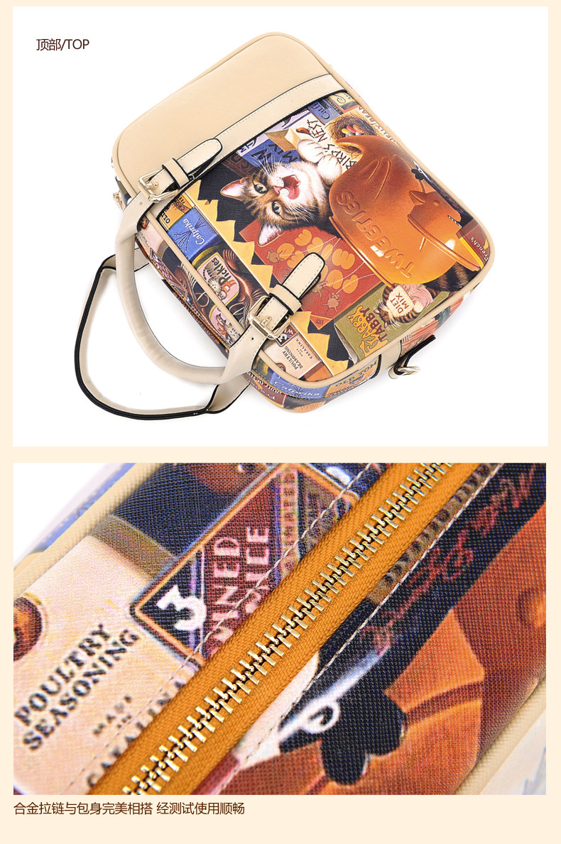 欧美卡通印花休闲单肩手提斜跨大包。内部1个拉链袋,2个置物袋