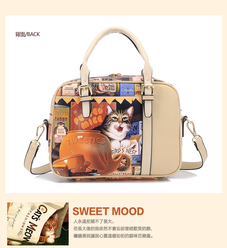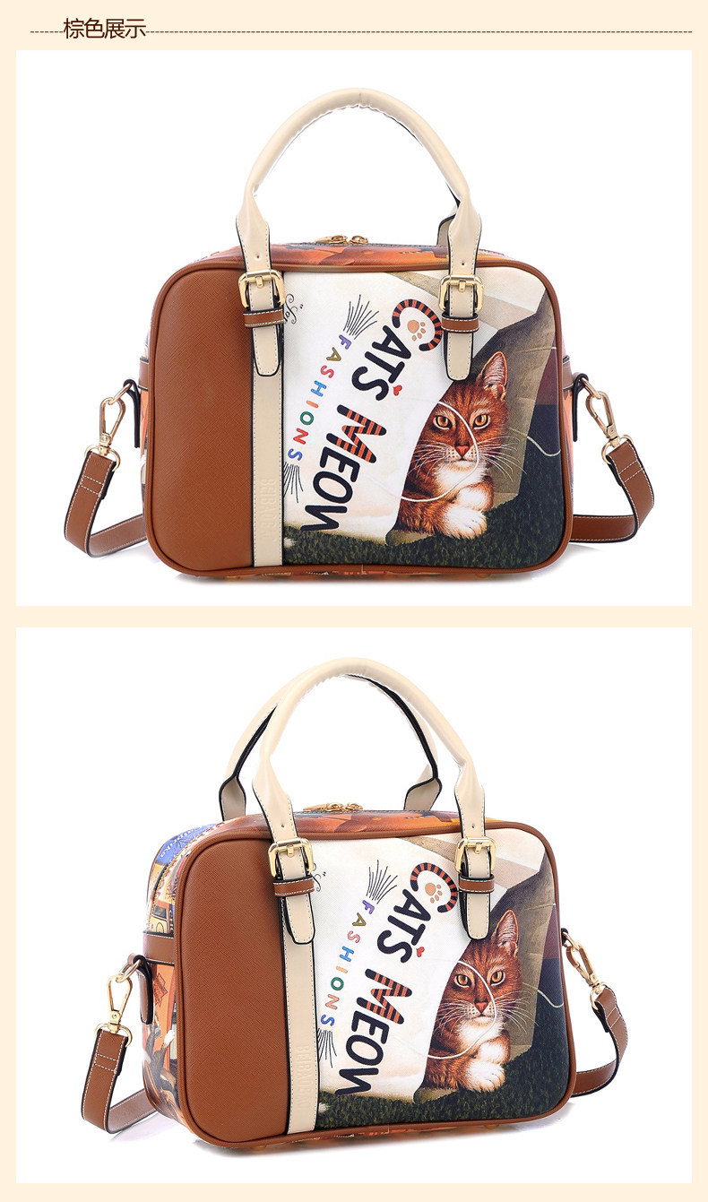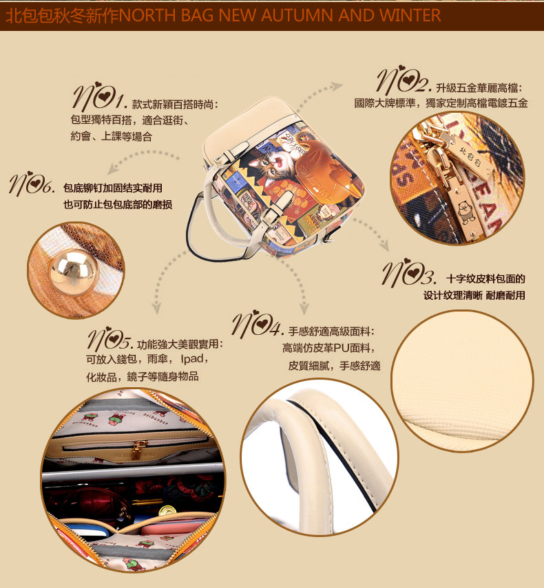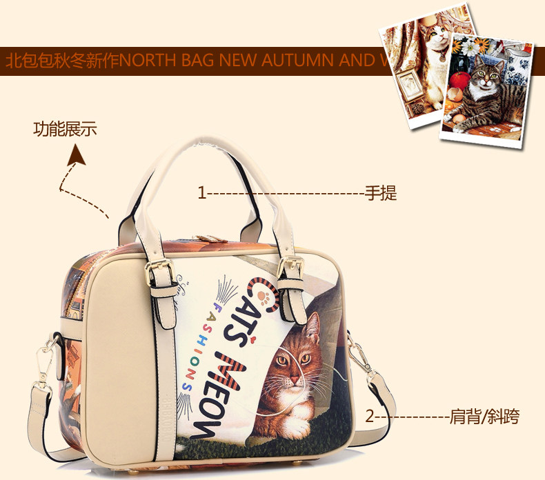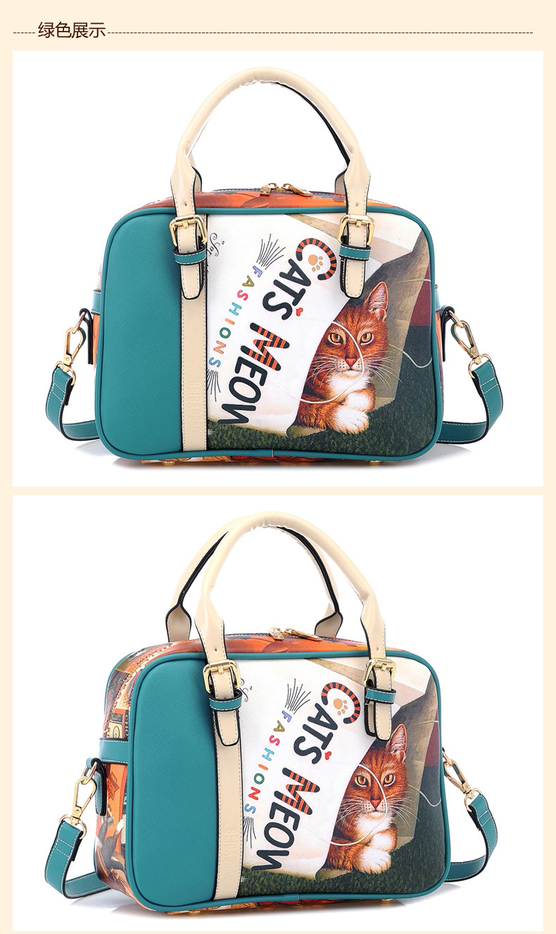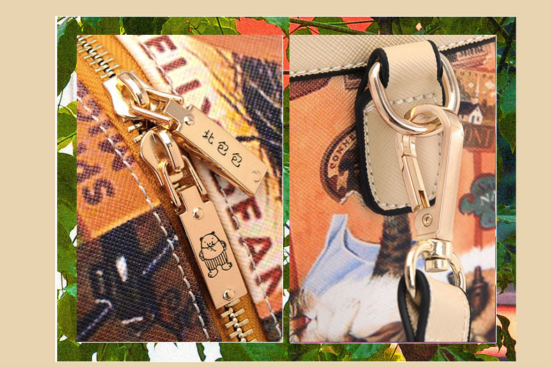 欧美卡通印花休闲单肩手提斜跨大包。内部1个拉链袋,2个置物袋