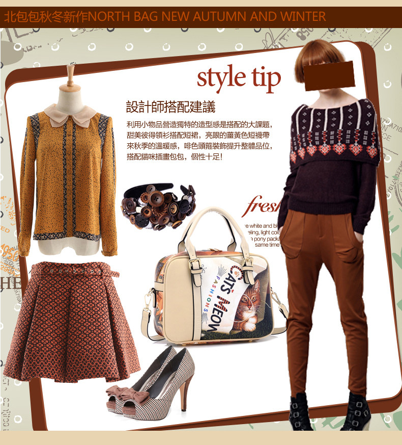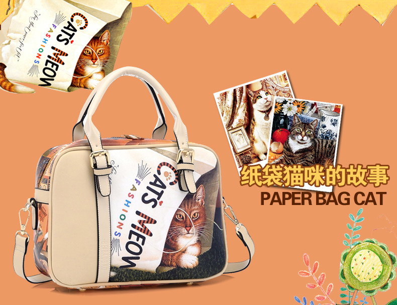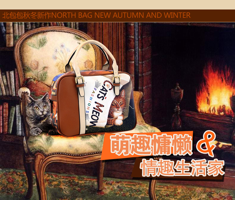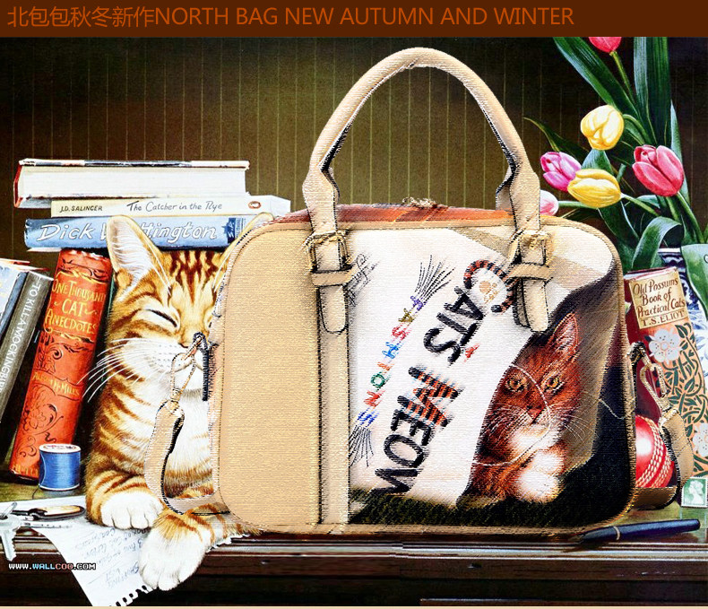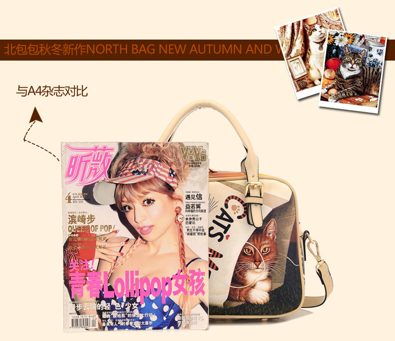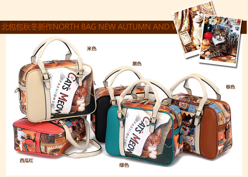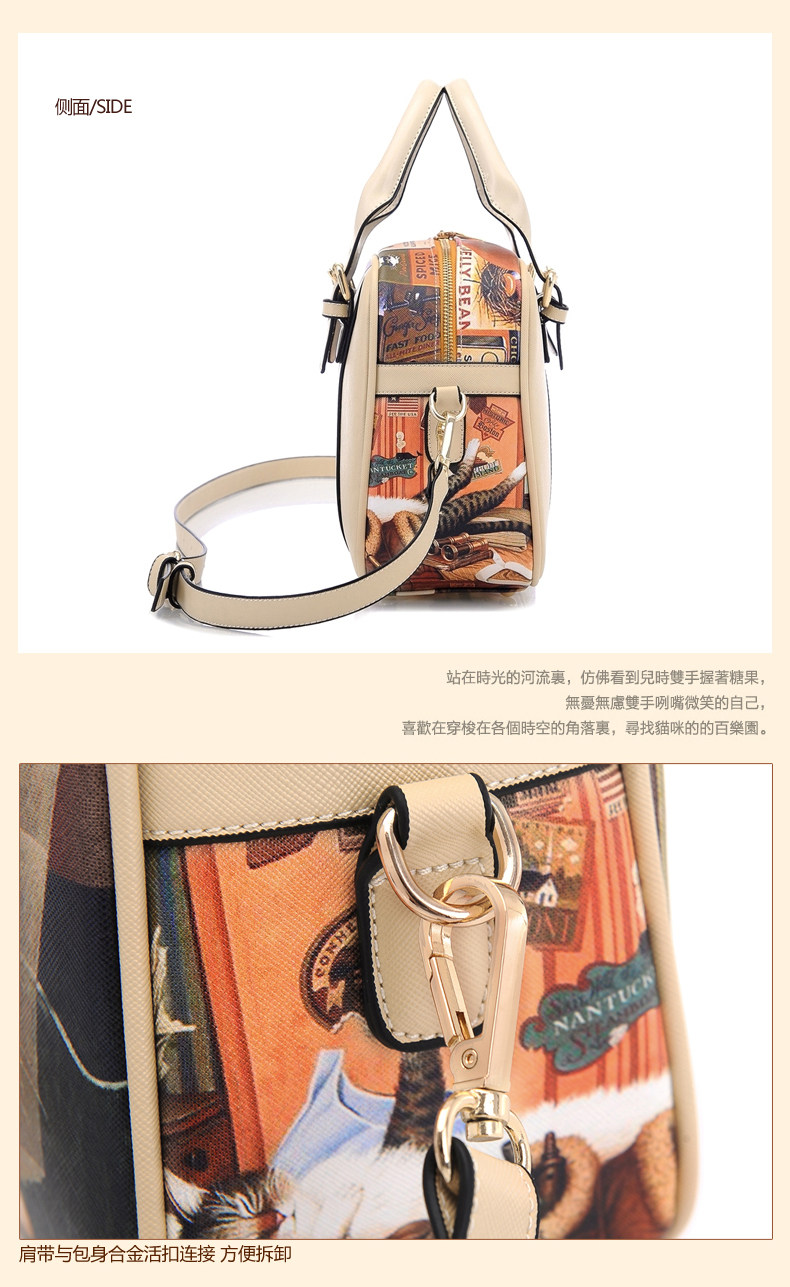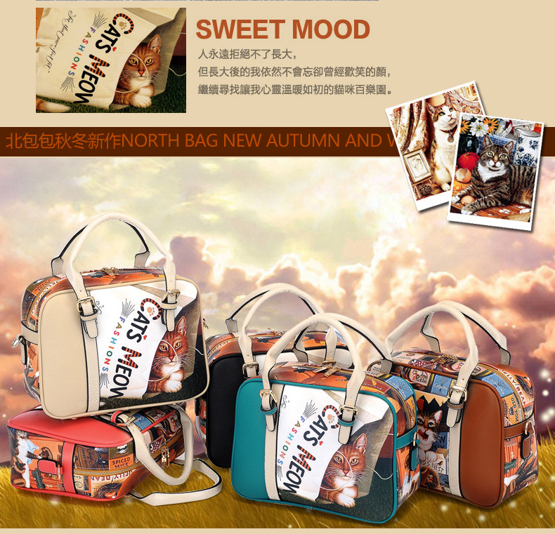 欧美卡通印花休闲单肩手提斜跨大包。内部1个拉链袋,2个置物袋