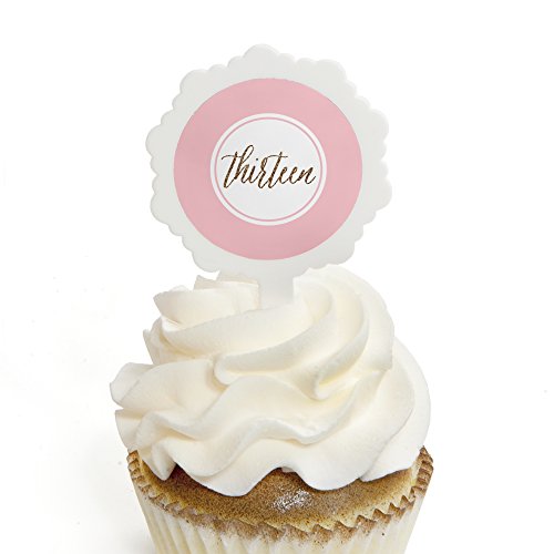 Chic 13th Birthday - Pink and Gold - Cupcake Picks with Stickers - Birthday Party Cupcake Toppers - 12 Count