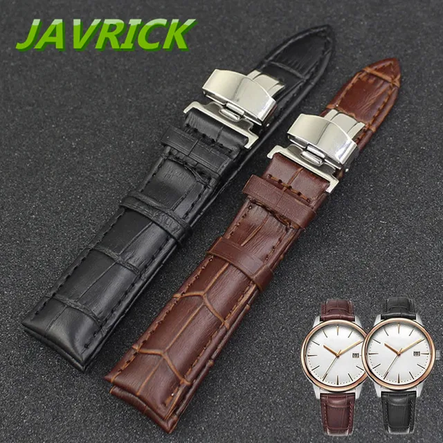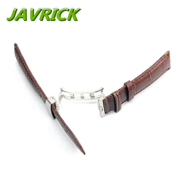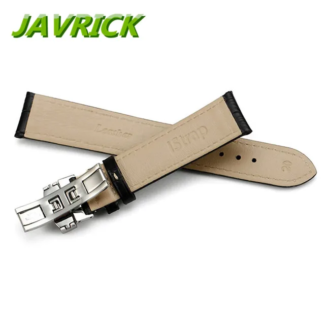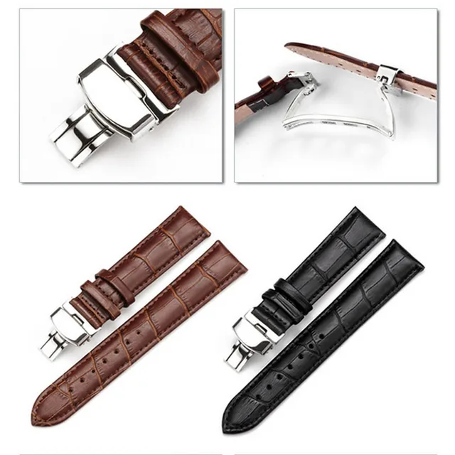 | [해외]고급 가죽 스테인레스 스틸 나비 걸쇠 버클 시계 밴드 스트랩 18-24 미리메터 3 색 |