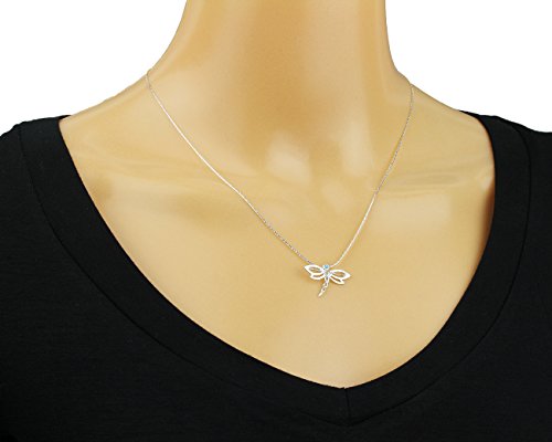 The Silver dragonfly pendant measure about 3/4 inch (or 2 cm) in width and length. The Silver chain measures about 18" (or 46 cm) long and comes with a standard 925 Silver 4" extension chain for an adjustable length up to 22 inches (or 56 cm).