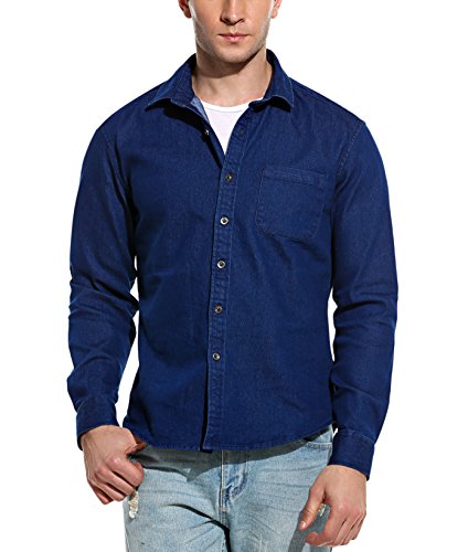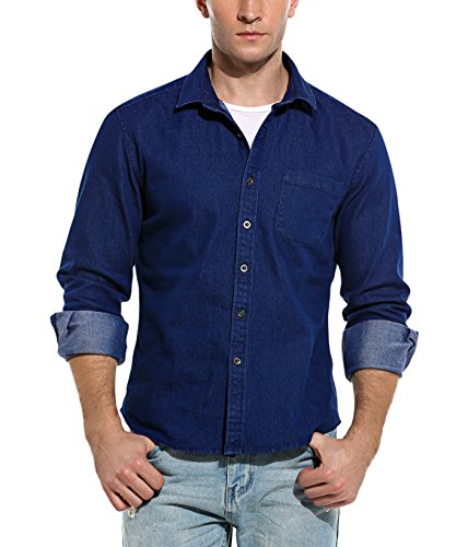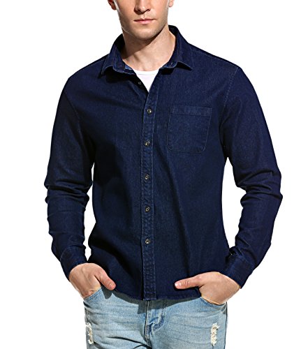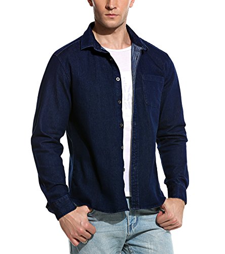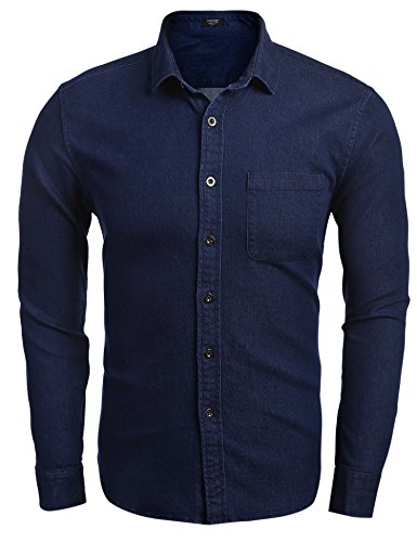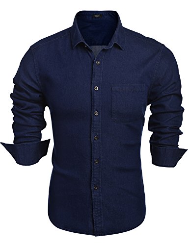 Coofandy Herren Jeanshemd regular fit 4 Farben Figurbetont Denim Freizeit Langarm Jeanshemden mit Tasche