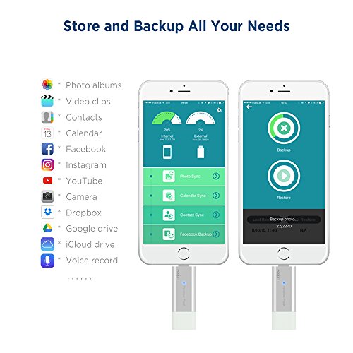 - 3. Powerful Data Sync and Backup: The application backs up contacts, photos, calendars, data from Facebook, Instagram, Youtube; and cloud data (Google drive, iCloud drive) to the flash drive at press of a button. Never worry about replacing a phone, or freeing up your phone space.