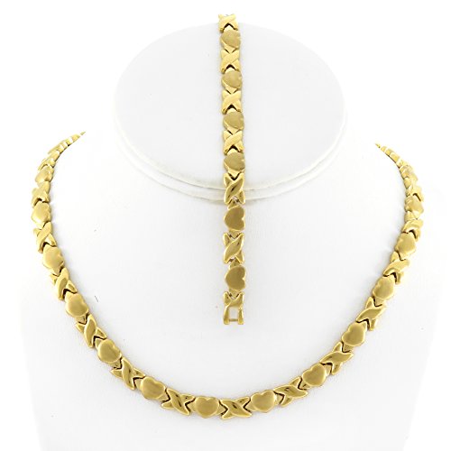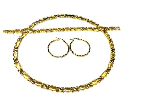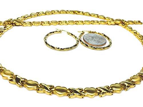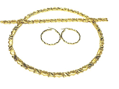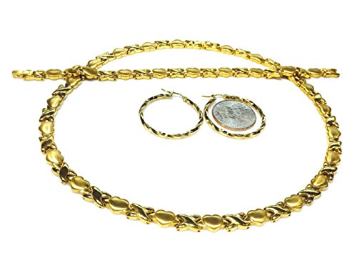This classic "hugs and kisses" (XOXO) stampato set is made of high quality stainless steel.The hoop earrings add to a great finished set.Wear this versatile set with any outfit for any occasion. Excellent quality at the best possible low price. High quality stainless steel has high resistance to rust, corrosion and tarnishing, which requires minimal maintenance. Stainless steel is one of the most bio-compatible metals, so stainless steel jewelry is amazingly hypoallergenic because of its anti-allergic properties. As one of the strongest of all jewelry metals, it does not oxidize and will be very durable. All makes it a top fashion accessory to complement your wardrobe with the sleek, contemporary styling offered by our stainless steel jewelry. Please feel free to ask me any question. Thank you for looking. Great quality at an amazing price. And this makes a great gift.Feature