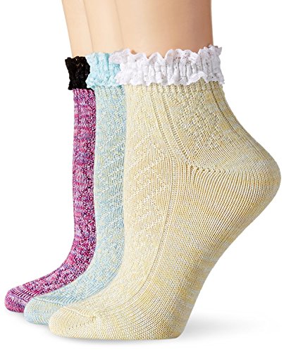 Studio : K. Bell Women's Socks and Hoisery Publisher : K. Bell Women's Socks and Hoisery Binding : Apparel Product Description Add some fun to your sock collection with the Dream Lace Anklet Sock With Marled Yarn and Matching Lace Trim 3-pack! Perfect socks for any occasion - the office, going out.. So comfy you might want to wear them to bed! Uniquely designed in Los Angeles. One pair per pack. 60% Rayon, 40% Spandex K. Bell Socks was founded in 1979 by Karen Bell as a small business based in Los Angeles, California. A creative entrepreneur at an early age, Karen used her fashion sense and determination to create fun, fashionable socks and tights with her signature K. Bell charm and appeal. From humble beginnings K. Bell has grown into a multi-million dollar business with an international customer base and a strong retail presence. K. Bell Socks has a reputation for great designs and a quality product, currently selling to major retailers on an international level as well as high-end specialty shops throughout the country. 0