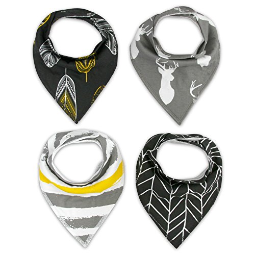 4-Pack Unisex Baby Toddlers Bandana Drool Bibs with Snaps 100% Soft Organic Cotton Unique Shower Gift Set Super Absorbent for Teething Feeding Fashion Adjustable (H)