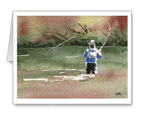 -. Feature : "Hooked up" fly fishing artwork by watercolor artist DJ Rogers. / Note card size is 4.25 x 5.5 inches / Matching white envelopes included. / Note cards are blank inside for your personal message. / Suitable for framing.