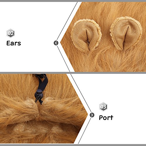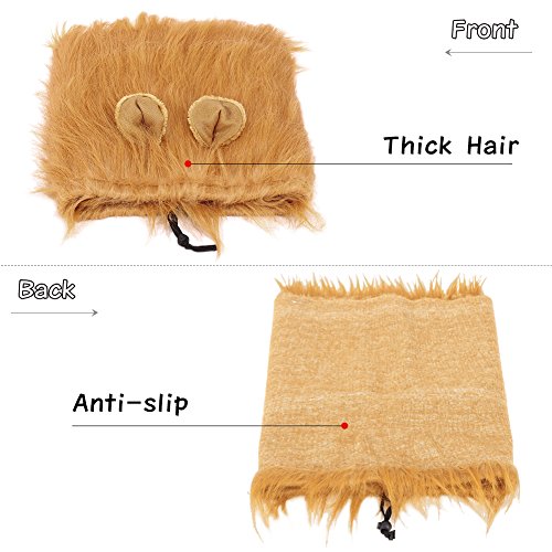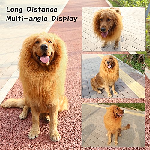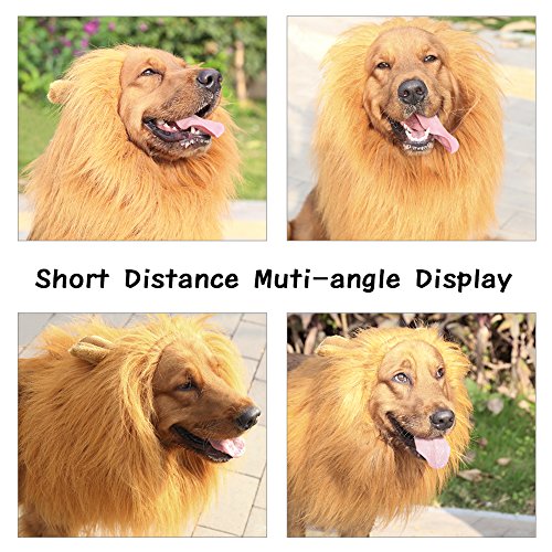 -. Feature : EASY TO WEAR AND QUICK BUTTON FIXED - First put it on your pooch head,then adjust the wide according to neck,then there is 10MM wide drawstring to tighten it around your poochies head then button fixed,finally poofed lion mane hair up with a brush and hairspray. Like this,the lion mane will not easy to slip off and also looks like a real lion. / ADJUSTABLE SIZE OF LION MANE WIG - Neck girth is 17.2" to 28.6" (43.7cm to 72.6cm),15" long,with a 10MM wide adjustable elastic drawstring to put it on,perfect costumes for large or medium dogs who weight in 60 lb to 160 lb. But it usually depend on the the size of your dog's head. / ENVIRONMENTAL MATERIAL AND CLEAN TIPS OF LION MANE - Faux fur and polyester. Lion mane touch smooth,soft and comfortable. Our lion mane inner fabric have the same color with mane,also can prevent slip off,instead of the ugly orange leaked out and slip off like other seller's. Simply wash with warm water and mild soap then air dry. / FANCY DRESS UP AND KEEP WARM DOUBLE FUNCTION - Lion mane costume not only can dress up a looking real lion,cutting slits in the wig for the ears help to make your baby slightly more bearable,and will win many compliments,but also can keep warm in the winter from cold wind,give you pooch 100% love. / ANY OCCASION CAN DRESS UP - Especially suitable for Halloween party, cosplay party, Christmas party ,Holiday photo shoots and other special occasions,also a best funny gifts for large or medium dogs.