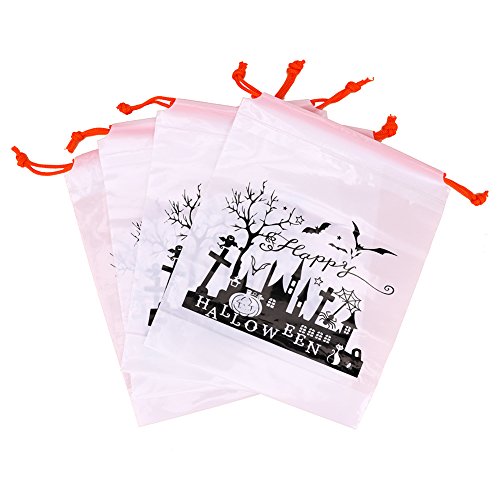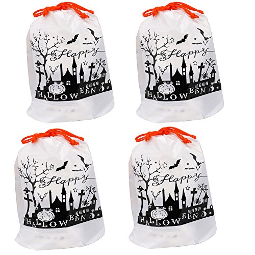 Yarssir Halloween Large Drawstring Goody Bag for Party Favors and Kids Present,4 Pack,9.8Inch