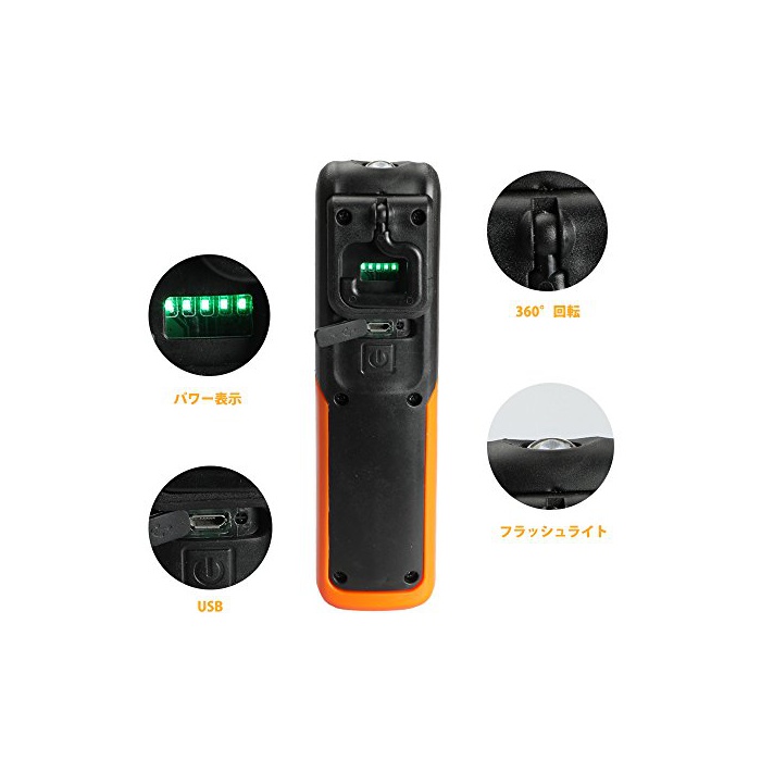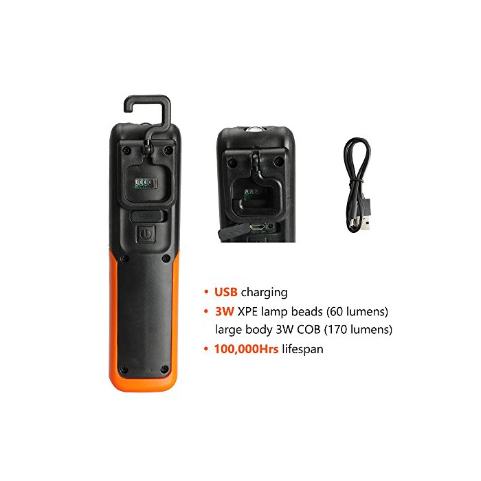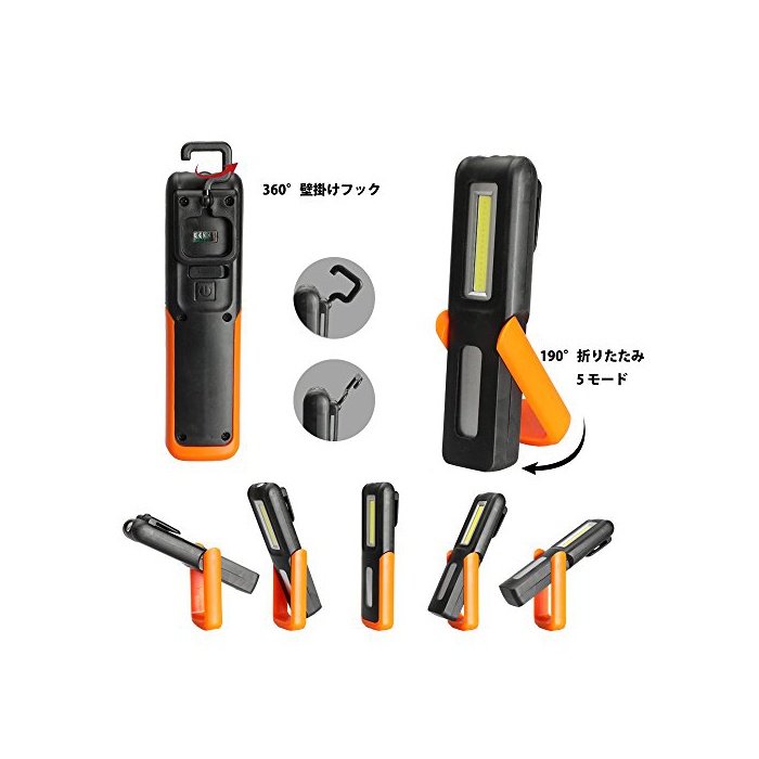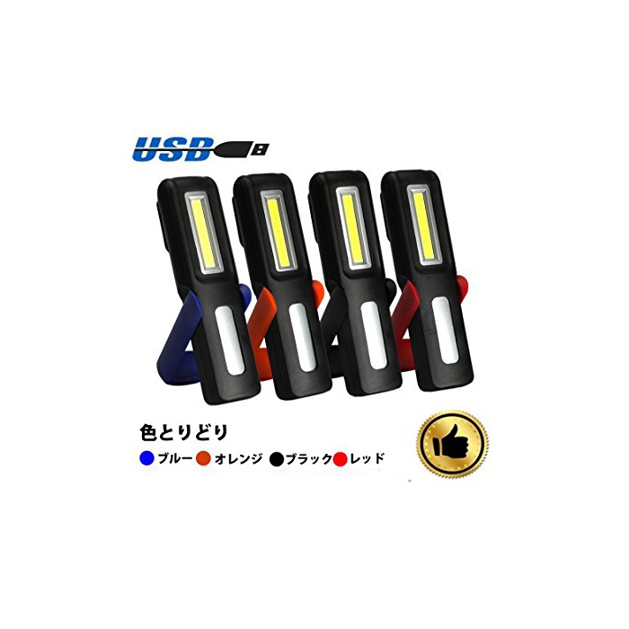 원본상품명: Three trees ポタブル USB充電式3W COB LED作業用 携式 ワクライト 明るい 3W LED 中電 フラッシュ ライトフックとマグネット 付き1個入