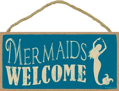 (SJT94387) Mermaids welcome 5" x 10" primitive wood plaque, sign