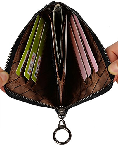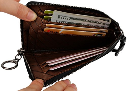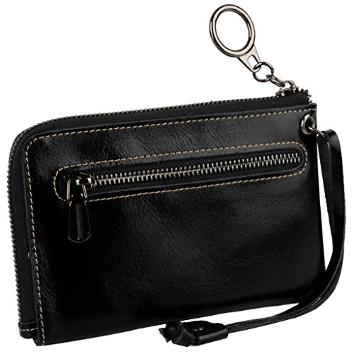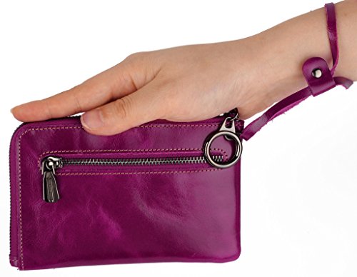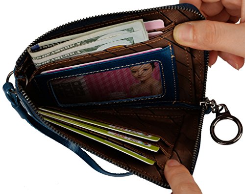 -. Feature : Real Soft Leather Wristlet Small Wallet, compact but really holds a lot. Also fits a small smartphone,like iPhone 5. / Tarnished-colored hardware, heavy duty zipper and detailed contrast stitching brightens up the wallet. / Large capacity due to its 9 card slots, 1 ID Window,and 1 outer zipped coin pocket.Still have a lot of room for your paper money. / Zipper-Around design and a wrist strap is made to keep your property safe. / Dimensions: 5.31"L x 3.46"W x 0.7"H .